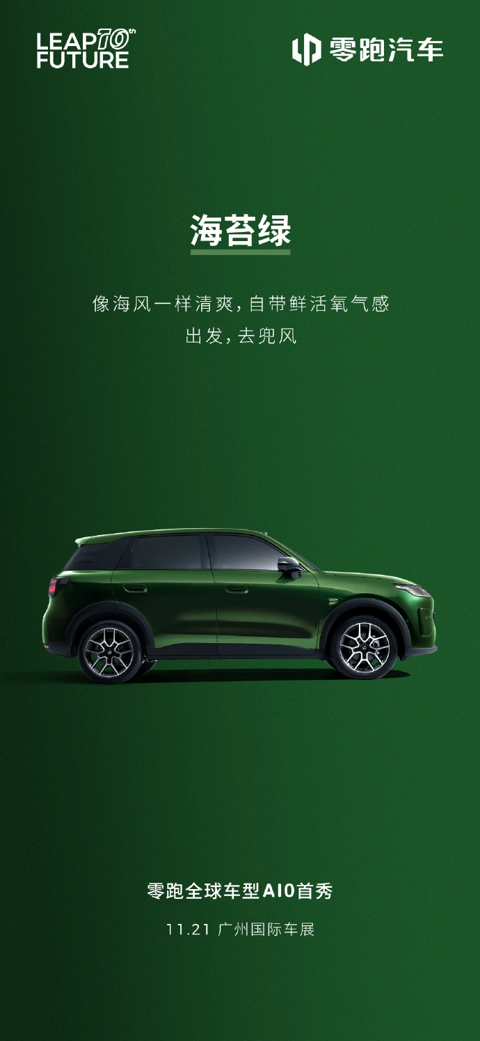 零跑 A10 海苔绿、橡果棕外观公布,11 月 21 日广州车展全球首秀